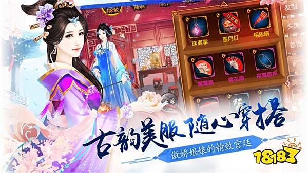 绝美古风世界:游戏高度还原了古代建筑、服饰与礼仪,每一个场景都如同一幅精美的古风画卷。你可以自由搭配服饰饰品,打造专属的古风造型,体验从宫女到皇后的华丽蜕变。