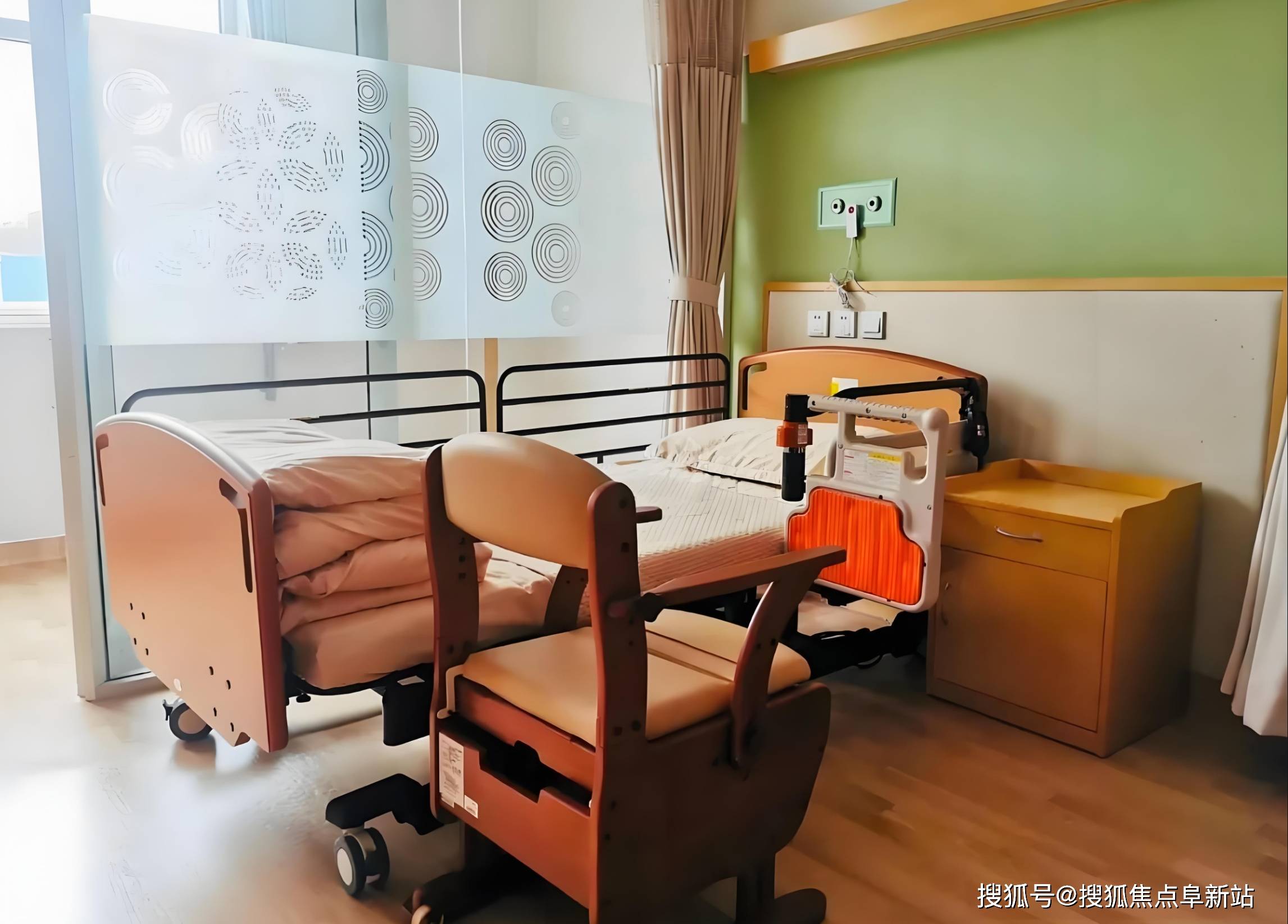 150张床位均围绕“安全、适老、智能、舒适”核心打造,按日本优秀级适老化标准精装交付,8000元/月起的定价对应高品质居住体验,细节之处尽显匠心。具体来看,双人间(25-30㎡)人均基础档5000-7000元/月起,采用L型扶手与恒温花洒设计,配备防褥疮气垫床及共享会客区,卫生间零高差设计可容纳轮椅360度旋转,防滑系数达R13级的PVC地胶全方位守护安全;单人间(25-30㎡)7000-9000元/月起,配备日本进口电动护理床、毫米波雷达跌倒监测仪及独立卫浴,床头智能终端可实时调取健康档案;认知症专区(37张床位)采用暖色调设计与“怀旧疗法”,布置老式收音机等怀旧物件,配备防走失手环与电子围栏,激越行为发生率下降40%。