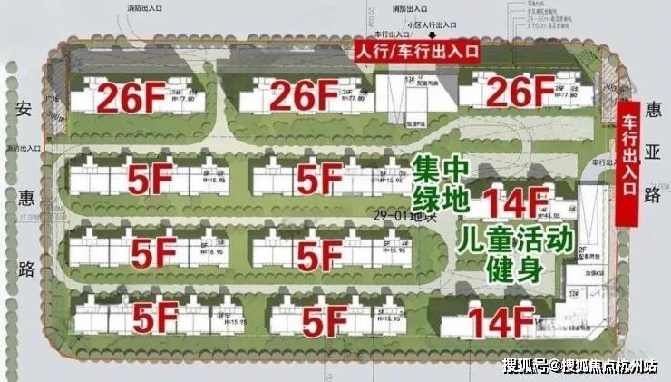 29-01地块原设计方案,将北面人行/车行的出入口向西侧的安惠路方向进行了调整,并疑似将北面的主入口调整到了惠亚路一侧。