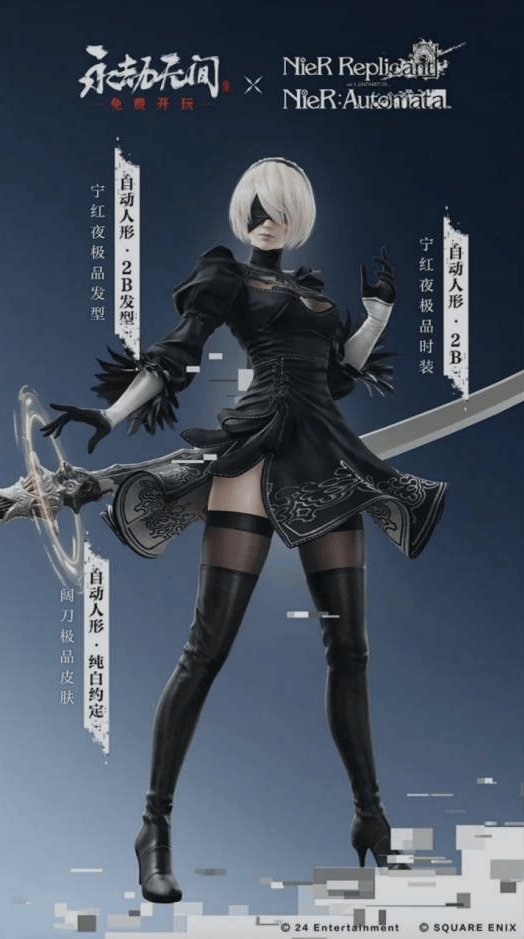 7 月份公布的盗墓笔记联动,他们也是一反常态的勤恳,以前联动角色往往都是以皮肤形式登场,比如和尼尔联动的时候,宁红夜就出了一个 2b的皮肤。